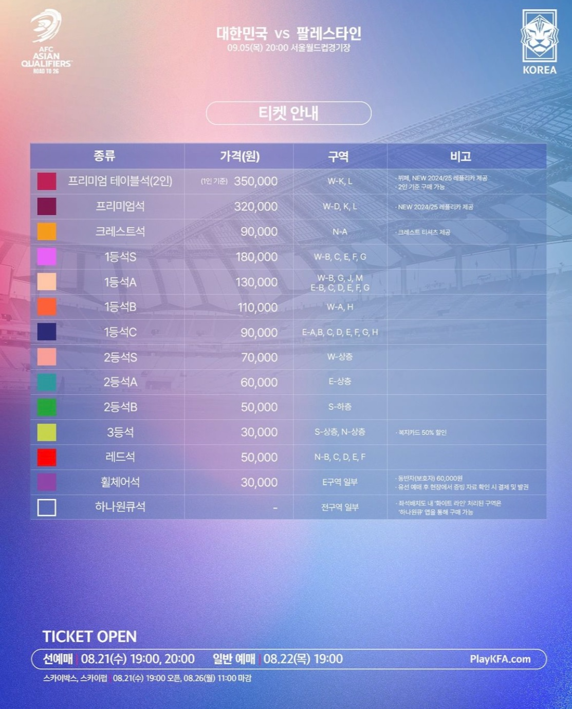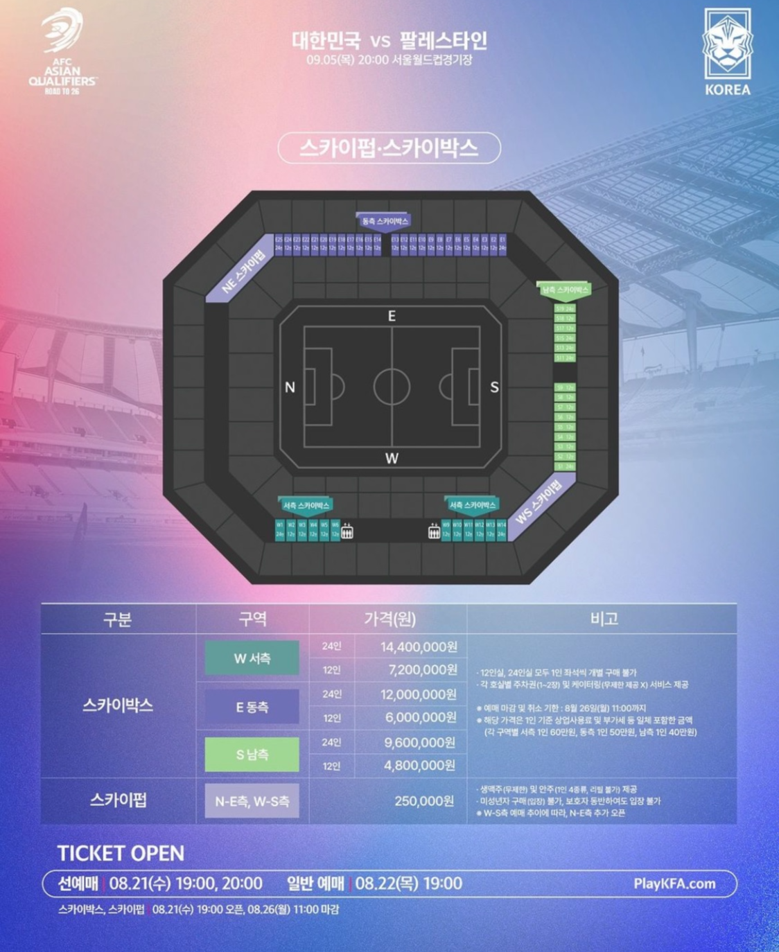 이번 축구경기부터 좌석별 등급뿐만 아니라 구역별 가격 또한 올랐다고 합니다.