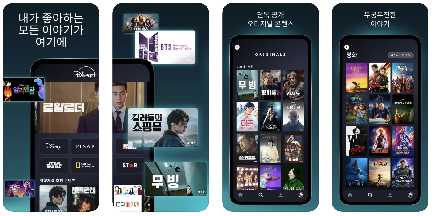 - 풍부한 콘텐츠: 디즈니 클래식부터 최신 마블 시리즈까지!