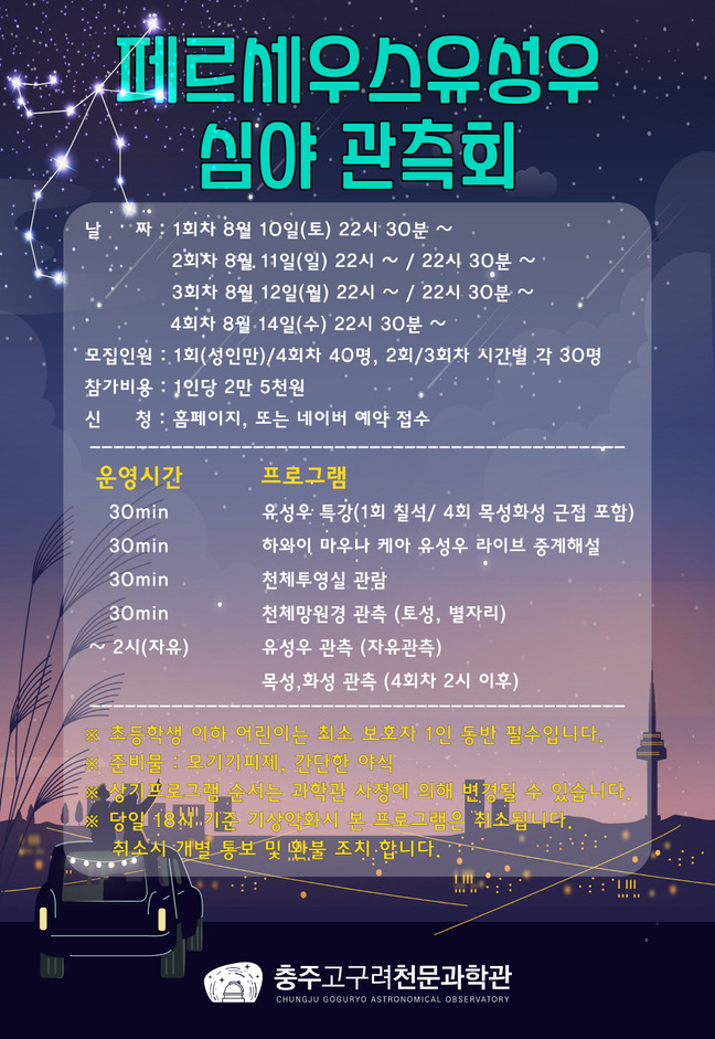 ▼충주에서 페르세우스유성우 심야 관측하기▼