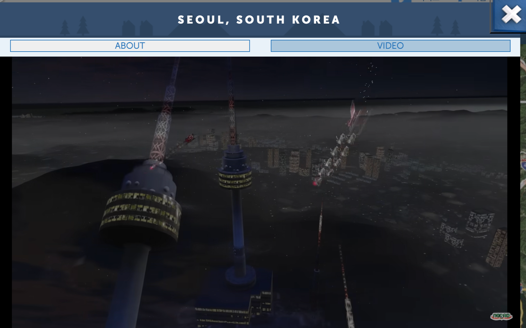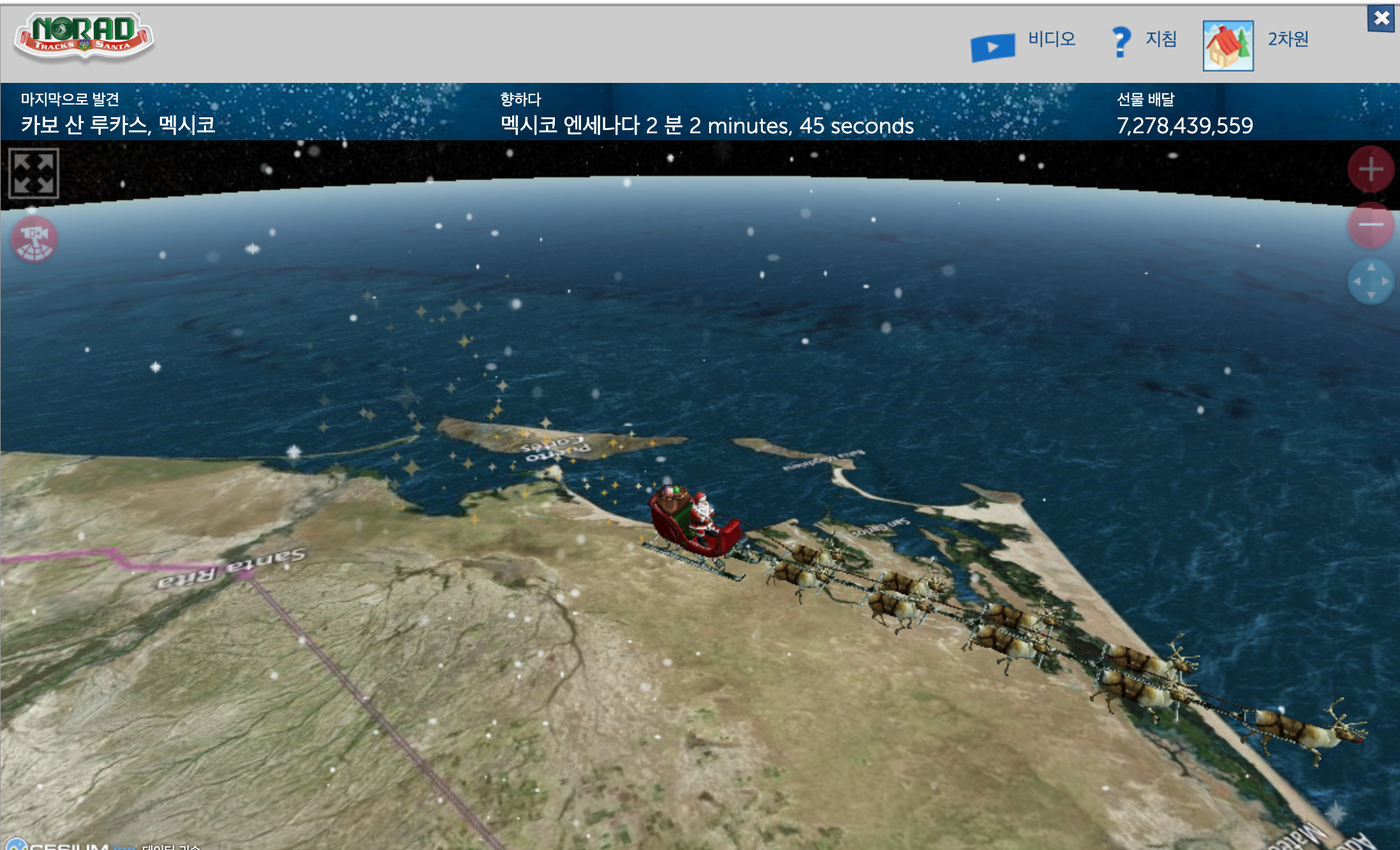 매년 12월 24일, NORAD는 산타가 이동하는 경로를 추적하고, 그 위치를 웹사이트와 앱을 통해 공개합니다. NORAD의 산타 추적기는 고도와 위치를 GPS와 위성 시스템을 사용해 실시간으로 감지하며, 이를 통해 산타가 어느 지역을 지나고 있는지 보여줍니다.