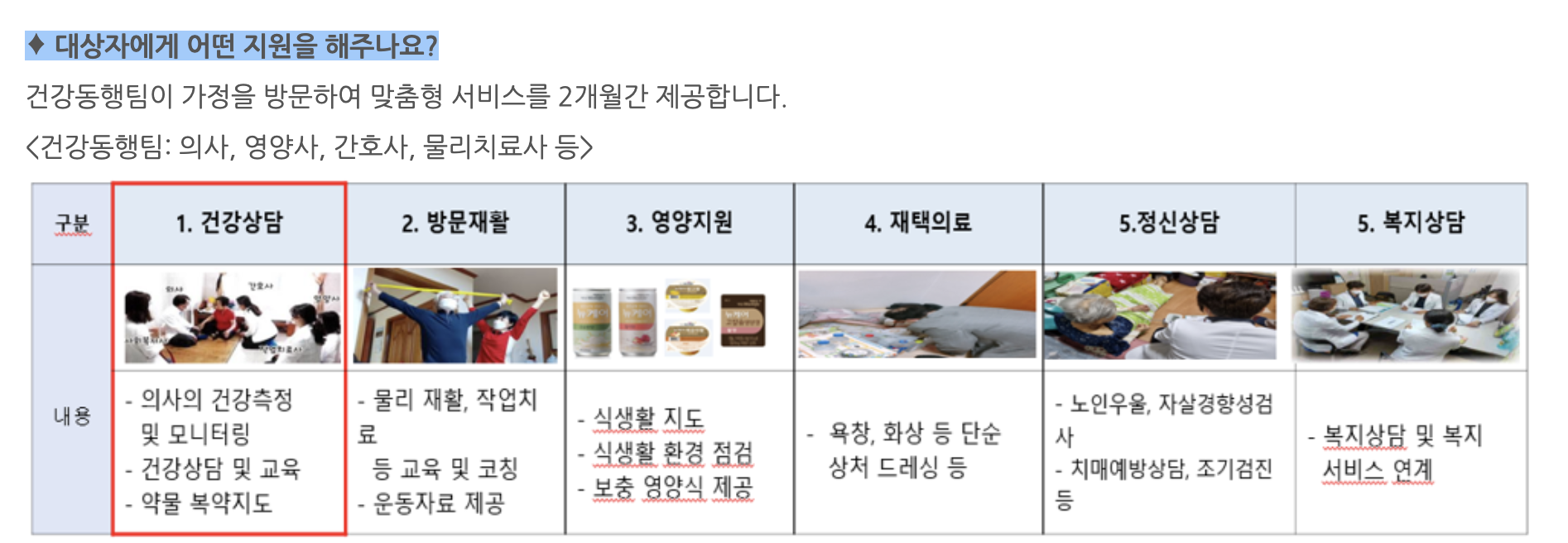 ✔️서비스의 내용: 맞춤형 통합 돌봄 서비스