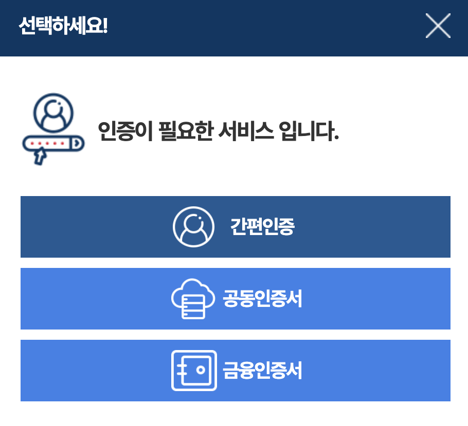 3. 신청하고자 하는 대상의 증명서 신청 버튼을 클릭합니다.
