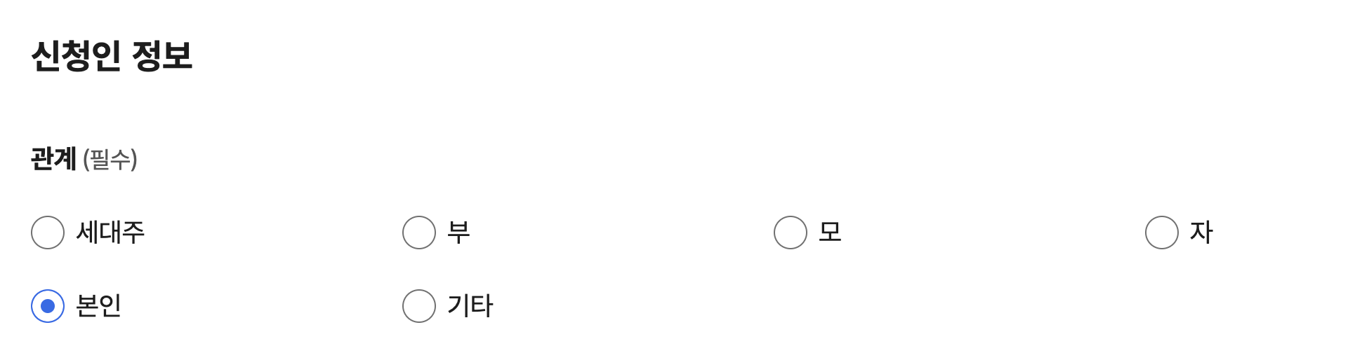 - 본인의 경우 관계에 본인.