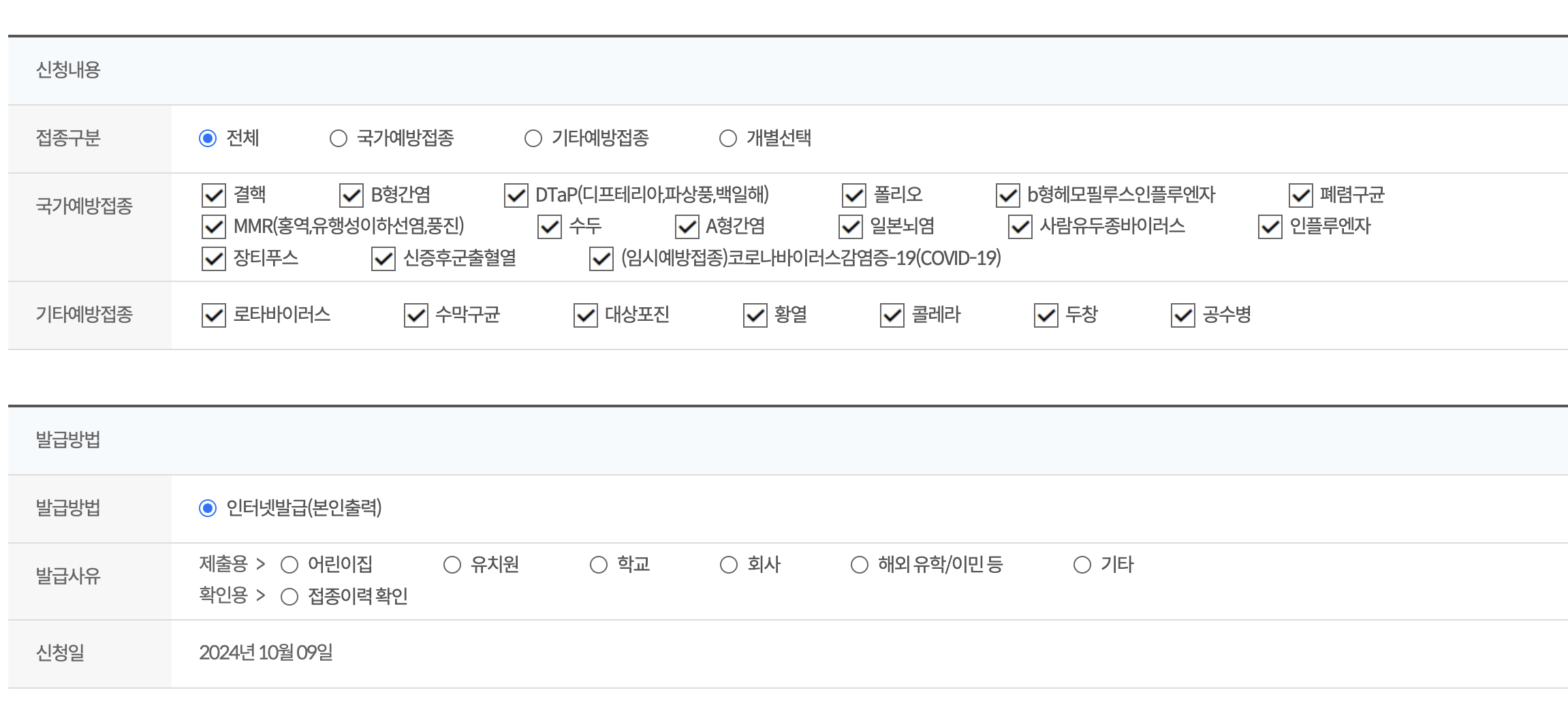 예방접종 발급 대상