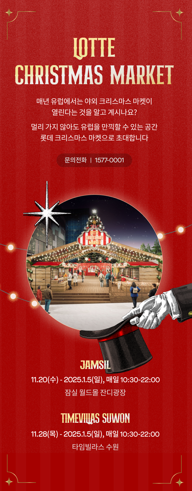 매년 유럽에서는 야외 크리스마트 마켓이 열리고 있습니다. 이번 크리스마스에는 해외를 가지 않아도 유럽을 즐길 수 있는 크리스마스 있다는 사실을 알고 계시나요? 국내에서 유럽을 즐길 수 있는 크리스마스 마켓, 롯데 크리스마스가 여러분은 초대합니다.