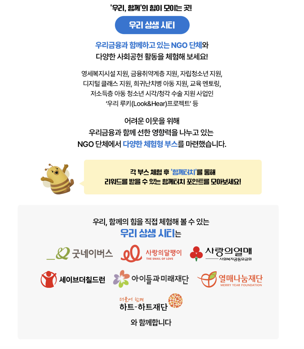 ✔️우리 상생시티- 우리 금웅과 함께하고 있는 NGO 단체와 다양한 사회공헌 활동을 체험